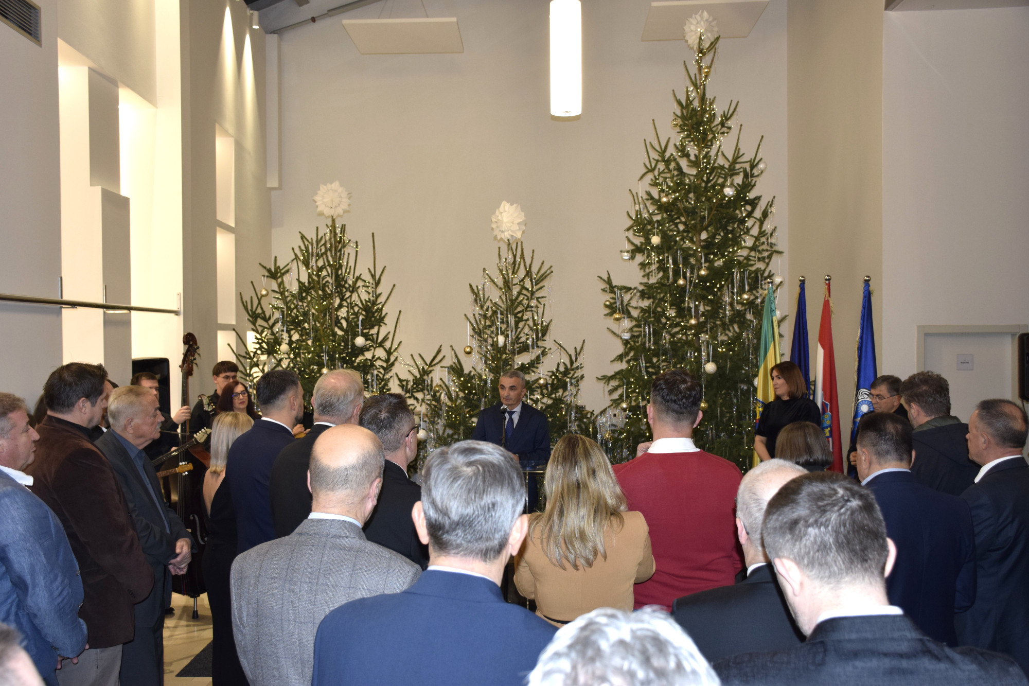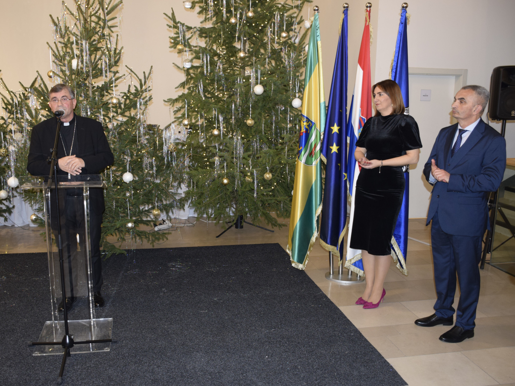 Prisutnima se obratila i požeško-slavonska županica Antonija Jozić, naglasivši kako su u protekloj godini pokrenuti i nastavljeni brojni razvojni projekti u području obrazovanja, zdravstva i infrastrukture, među kojima je posebno istaknula projekt brze ceste koja će Požegu povezati s autocestom. Uputila je također božićne i novogodišnje čestitke svima.
