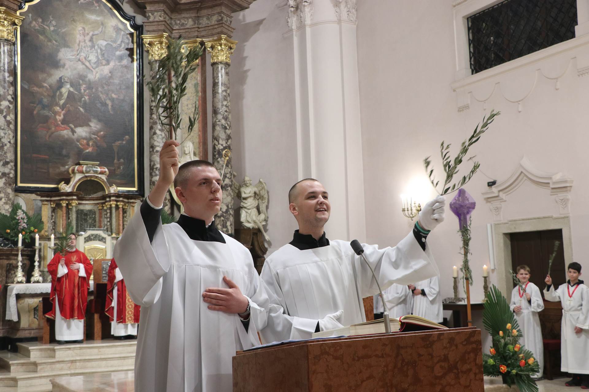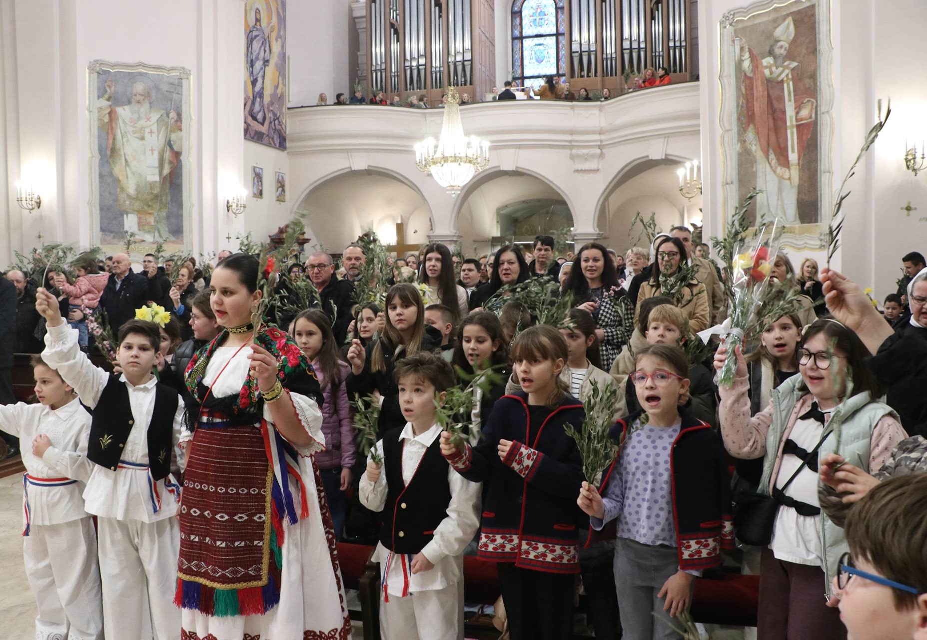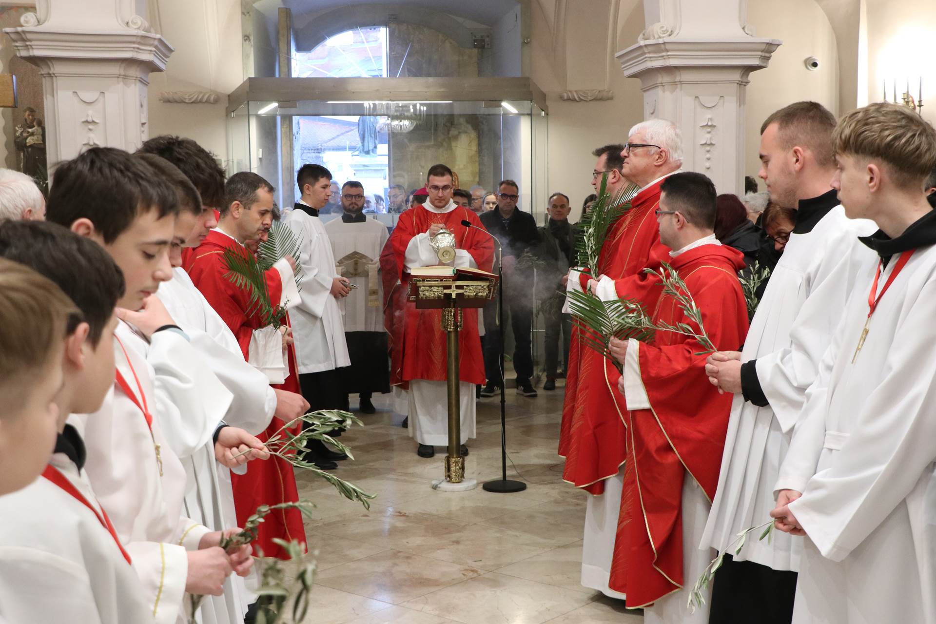 Slavlje je započelo na ulazu u katedralu blagoslovom grančica. Nakon blagoslova i navještaja evanđeoskoga ulomka o Isusovu svečanom ulasku u Jeruzalem, uslijedila je ulazna procesija. Potom su predstavnici mladih uputili Gospodinu Isusu tri poklika, a nazočna djeca i ostali vjernici, podižući maslinove grančice, odgovorili su pjevajući: „Hosana u visini“.