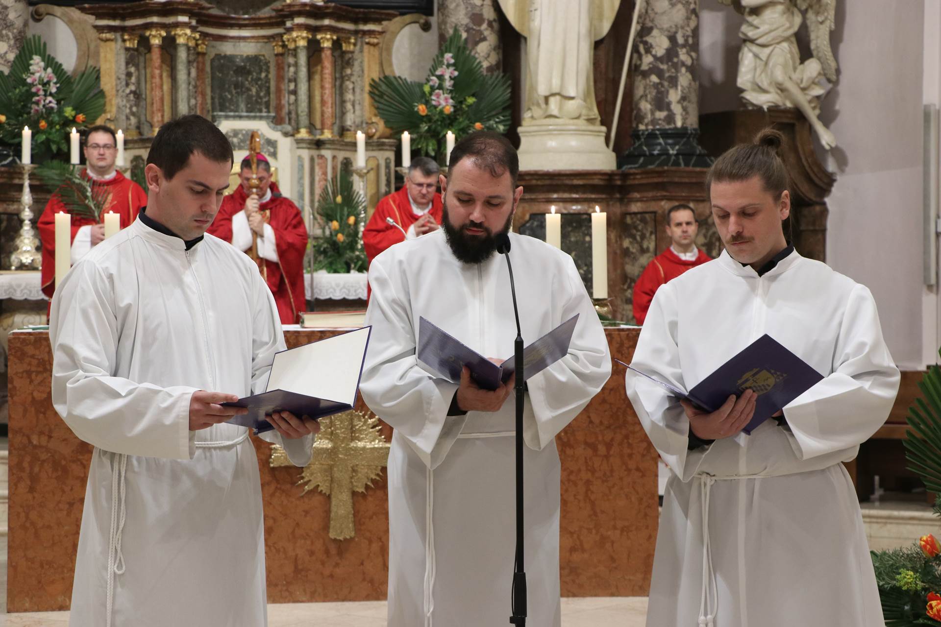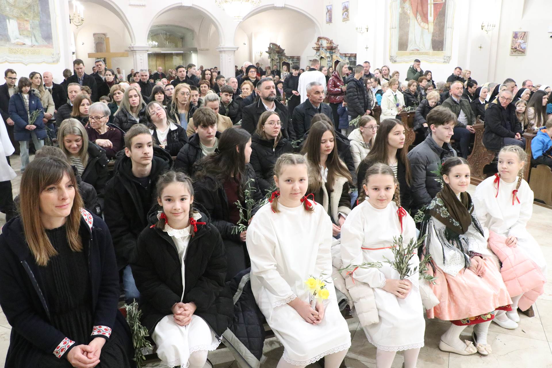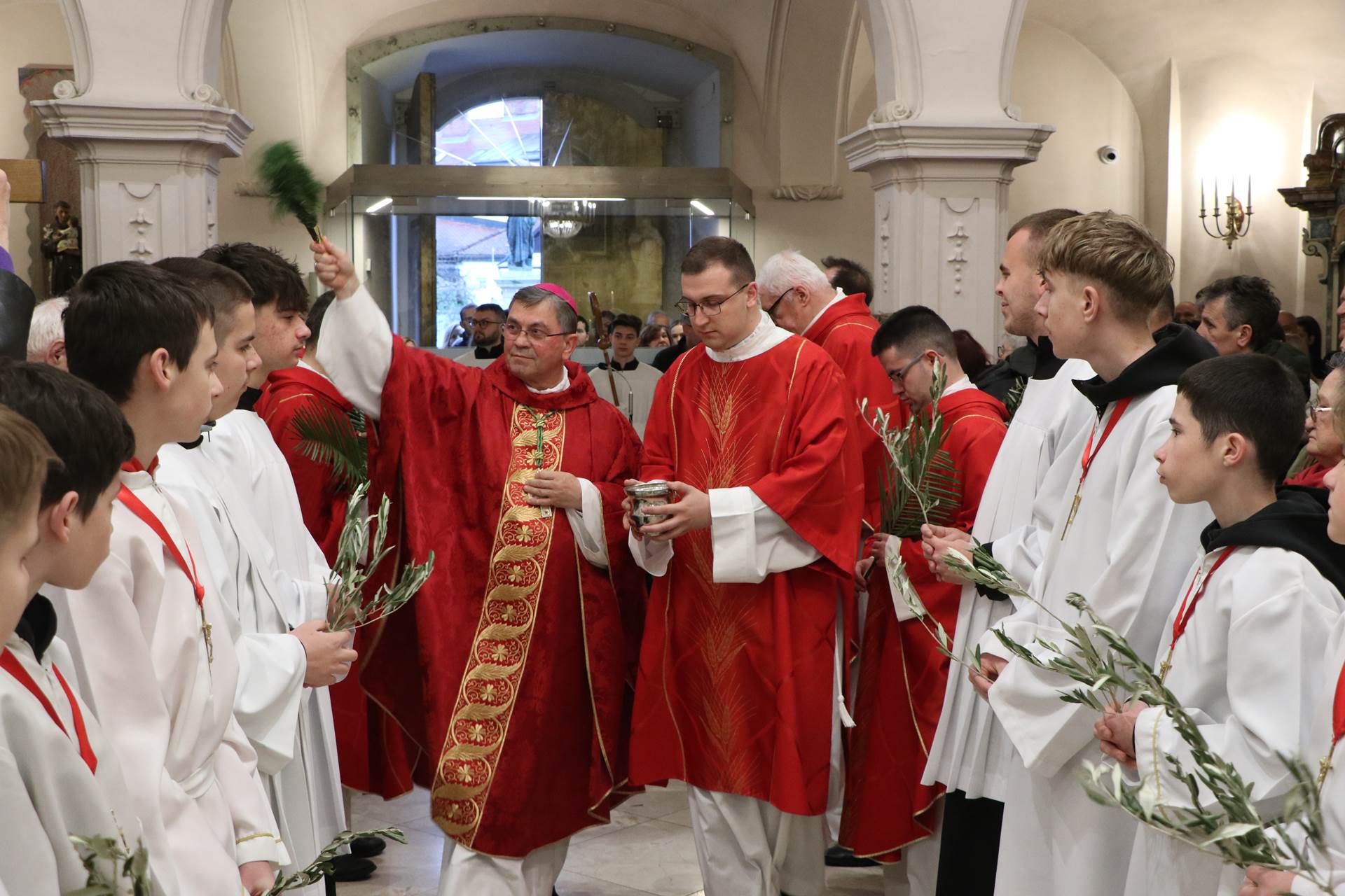 Slavlje je započelo na ulazu u katedralu blagoslovom grančica. Nakon blagoslova i navještaja evanđeoskoga ulomka o Isusovu svečanom ulasku u Jeruzalem, uslijedila je ulazna procesija. Potom su predstavnici mladih uputili Gospodinu Isusu tri poklika, a nazočna djeca i ostali vjernici, podižući maslinove grančice, odgovorili su pjevajući: „Hosana u visini“.