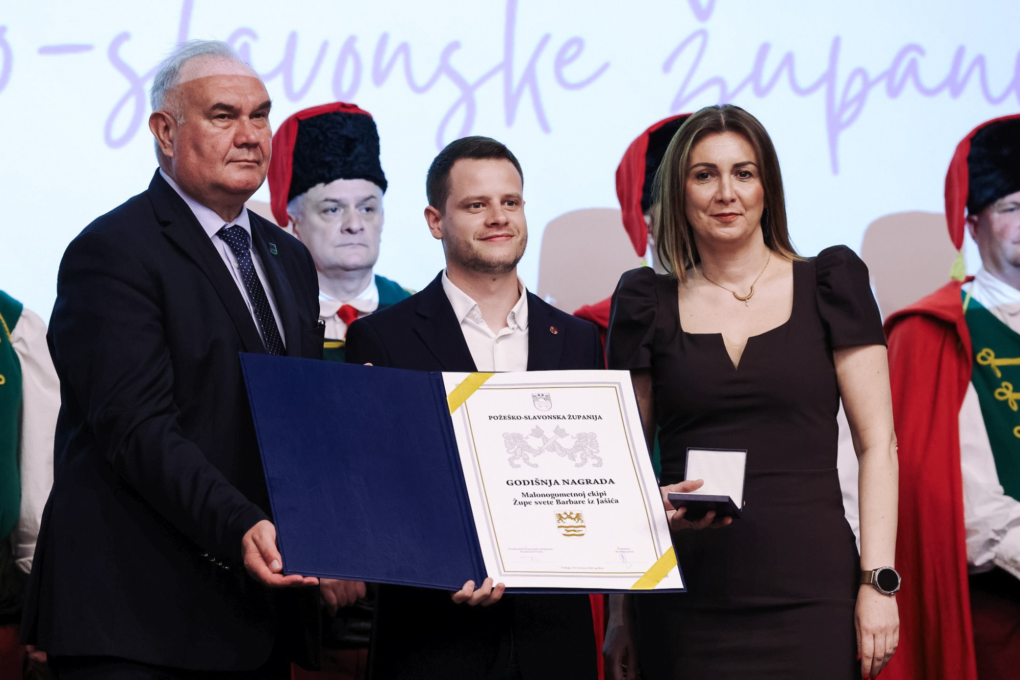 Na sjednici su dodijeljene nagrade: Povelja zahvalnosti Caritasu Požeške biskupije, a godišnje nagrade dobili su malonogometna ekipa župe sv. Barbare iz Jakšića, KUD „Šijaci“ iz Biškupaca, Državna ergela Đakovo – Lipik, požeška tvrtka Agronom d.o.o. i Opća županijska bolnica Požega. U ime nagrađenih obratio se ravnatelj bolnice Ivan Vukoja.