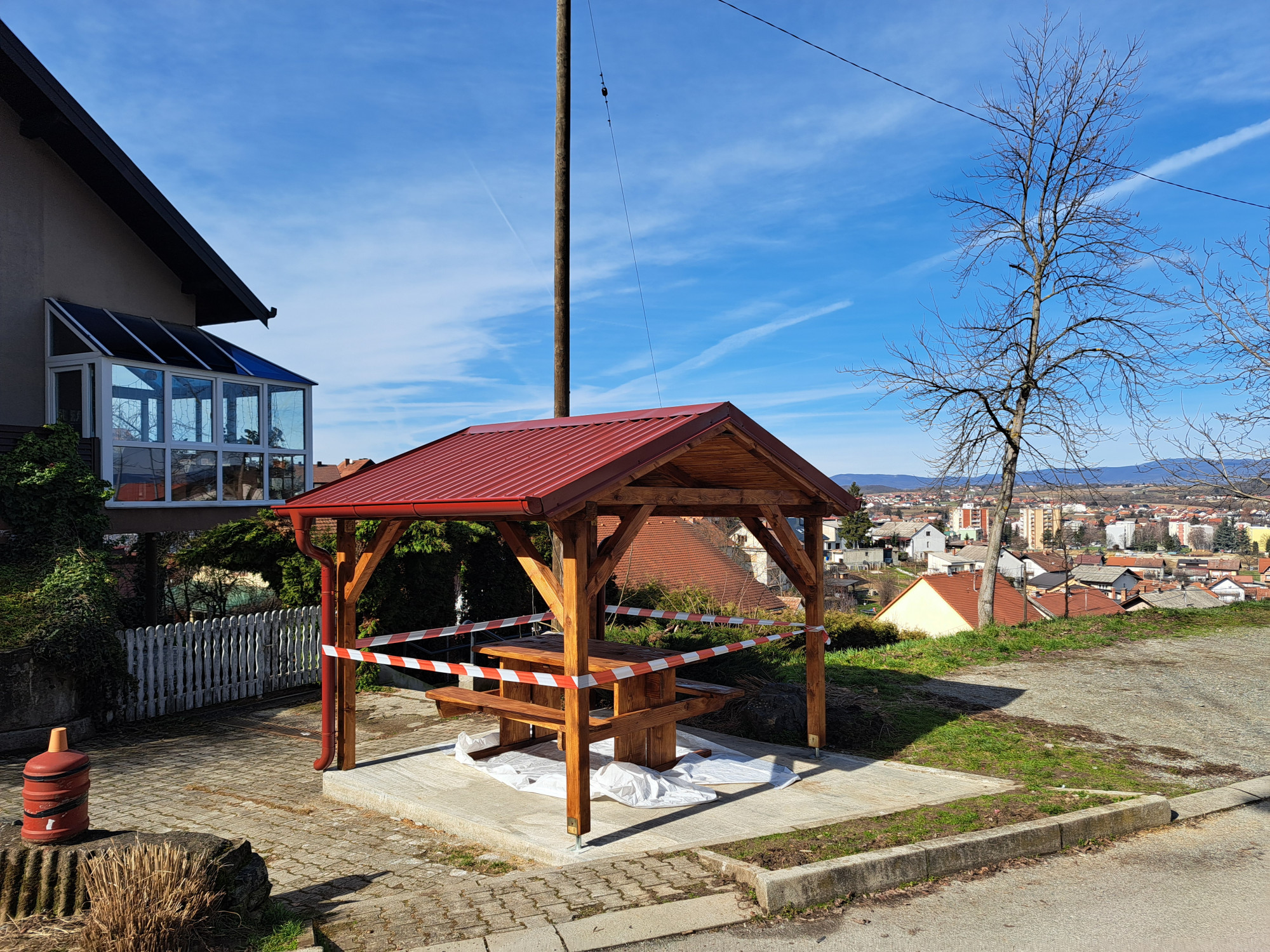 Prethodna sjenica, koja se nalazila na istoj lokaciji, oštećena je u nevremenu te je zbog sigurnosnih razloga morala biti uklonjena. Na njezinu je mjestu sada postavljena nova, funkcionalna sjenica namijenjena odmoru i druženju stanovnika toga dijela grada, ali i brojnim prolaznicima koji tim putem odlaze prema Požeškoj gori.